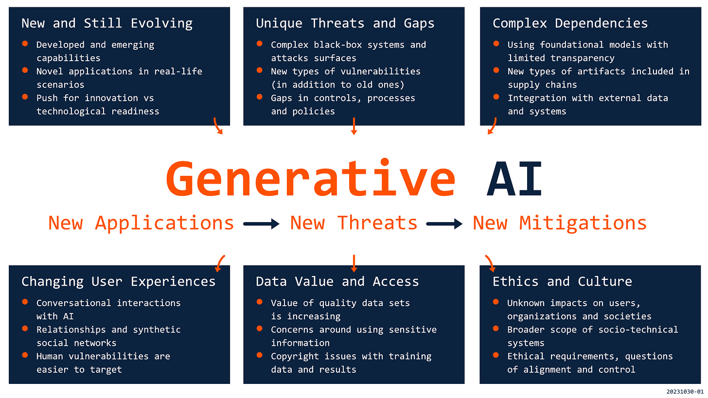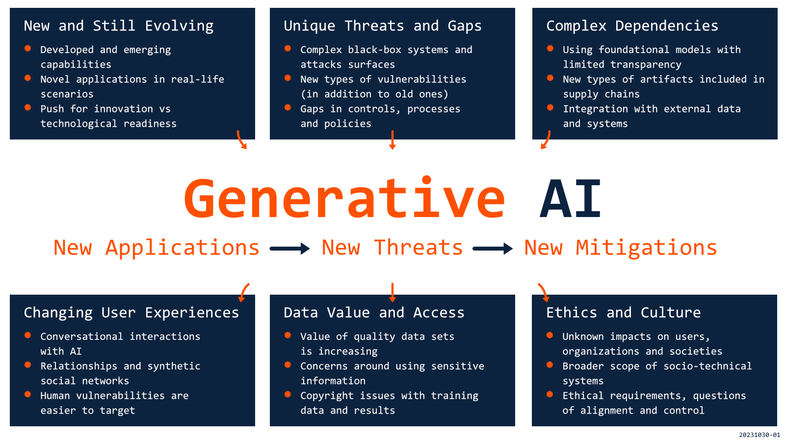 Generative AI is new and a work in progress. The capabilities are still evolving, and some are surprising and not necessarily well understood. There is a significant push for finding new applications for these capabilities, which means they can also be abused or misused in innovative ways. We don’t fully understand the threats landscape or technical limitations for Generative AI, but we already know about gaps in our controls and processes. Solutions for identified problems are developed, but they will take some time to mature, and some solutions will not be easy to find. The same applies to regulations under development, missing standards, metrics, or best practices related to effective usage policies, penetration testing, or independent certification. We are dealing with a moving target, where not only technology is changing, but also users’ behaviors and expectations, which might solve some problems and create brand new ones.